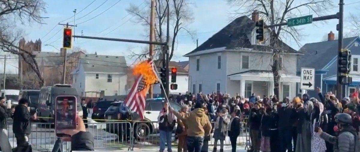 Olay yerinde toplanan vatandaşlar ülkelerinin yönetimine tepkilerini göstermek için sembolik olarak ABD bayrağını yakma eyleminde bulundu.
