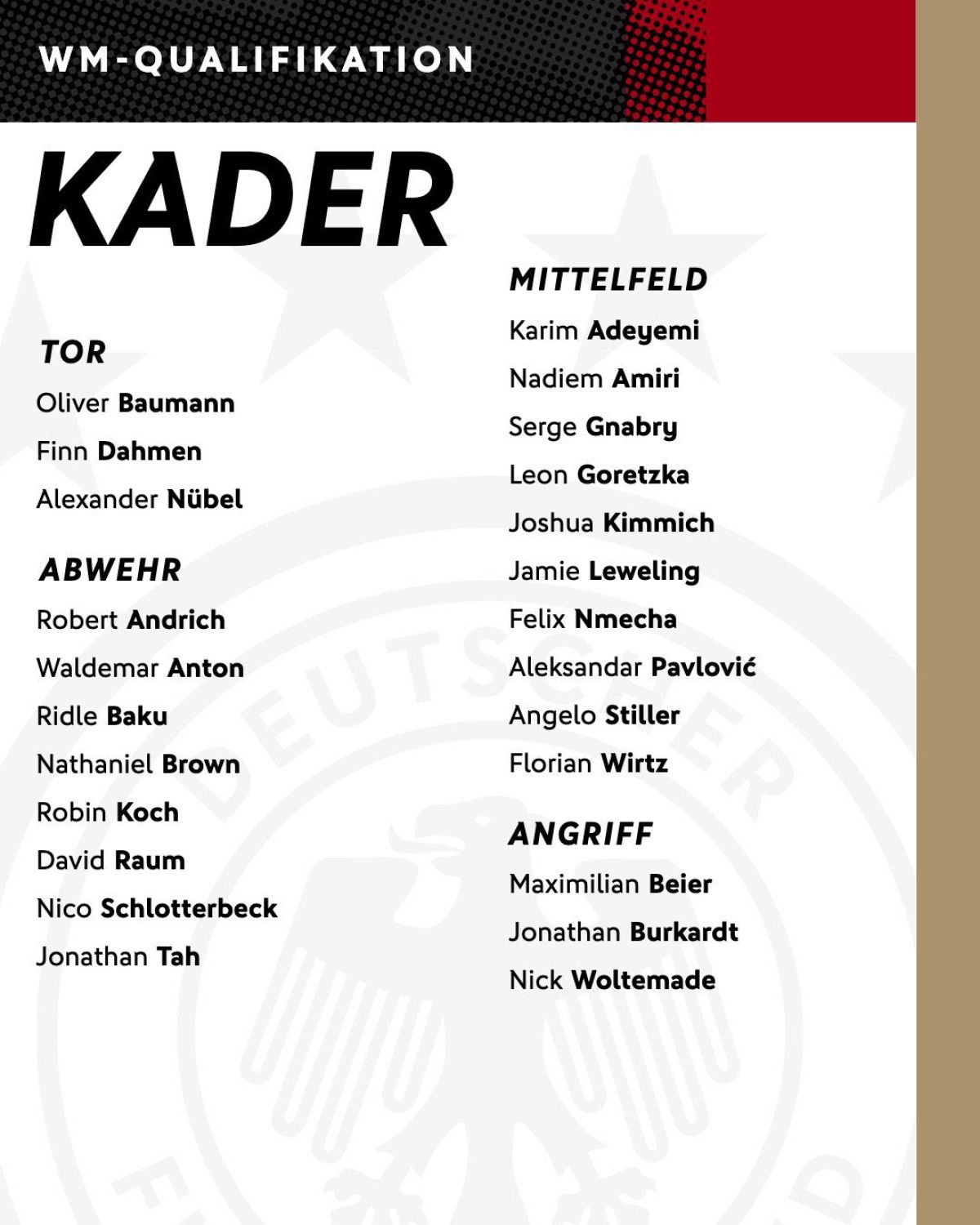 Bu maçlar öncesinde Almanya Milli Takımı’nın aday kadrosu açıklandı.