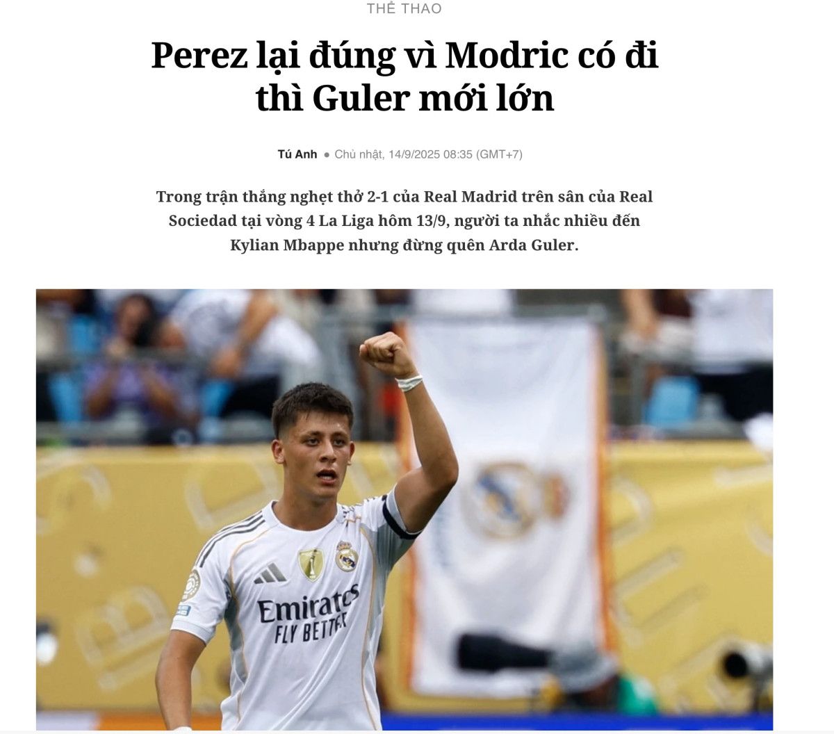 “Arda Güler, Real Madrid’deki değerini kanıtladı. Real Madrid’in hücum hattında Kylian Mbappe’nin mükemmel partneri Vinicius değil, Arda Güler. Genç oyuncunun Real Madrid formasıyla yavaş yavaş olgunlaştığını söyleyebiliriz. Sadece ara sıra rotasyonda yer alan bir oyuncuyken, takımın kilit oyuncularından biri haline geldi.”