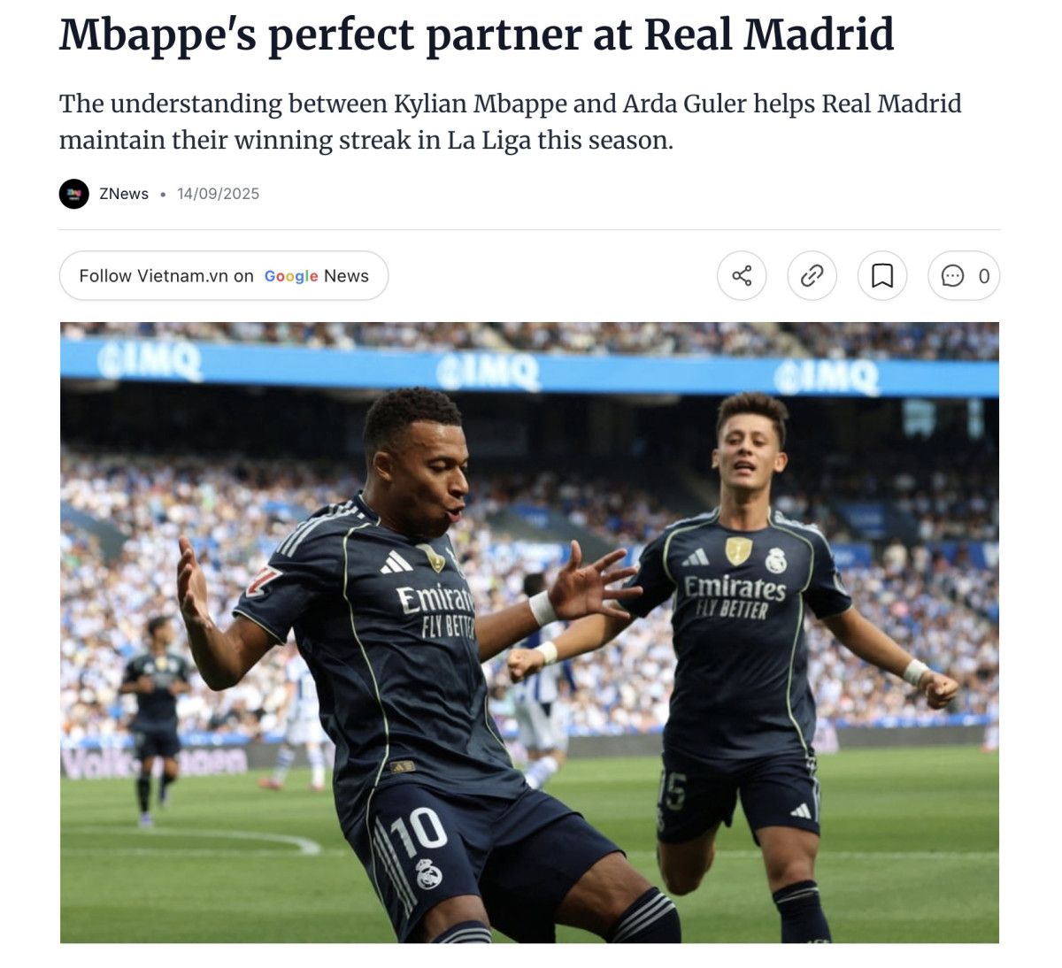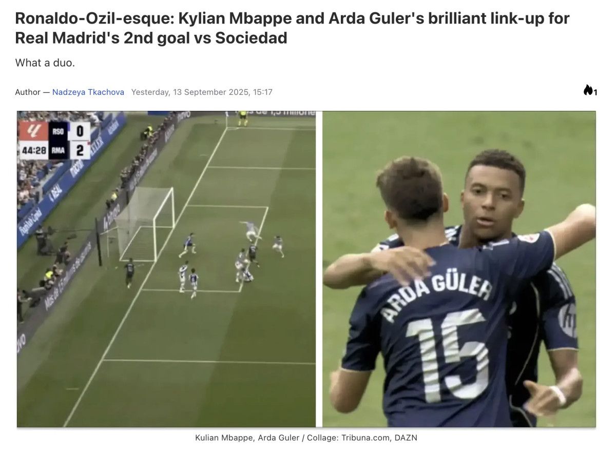 Tribuna’da yer alan haberin başlığında, Arda Güler’in ve Mbappe’nin arasındaki anlaşmanın Bernabeu’daki efsane Cristiano Ronaldo ve Mesut Özil ikilisini hatırlattığını yazdı.