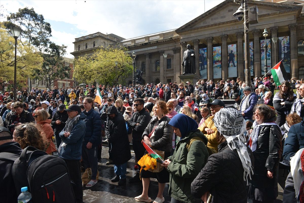 Avustralya’nın Melbourne kentinde, Victoria Eyalet Kütüphanesi önünde toplanan göstericiler, Avustralya hükümetine çağrıda bulundu.