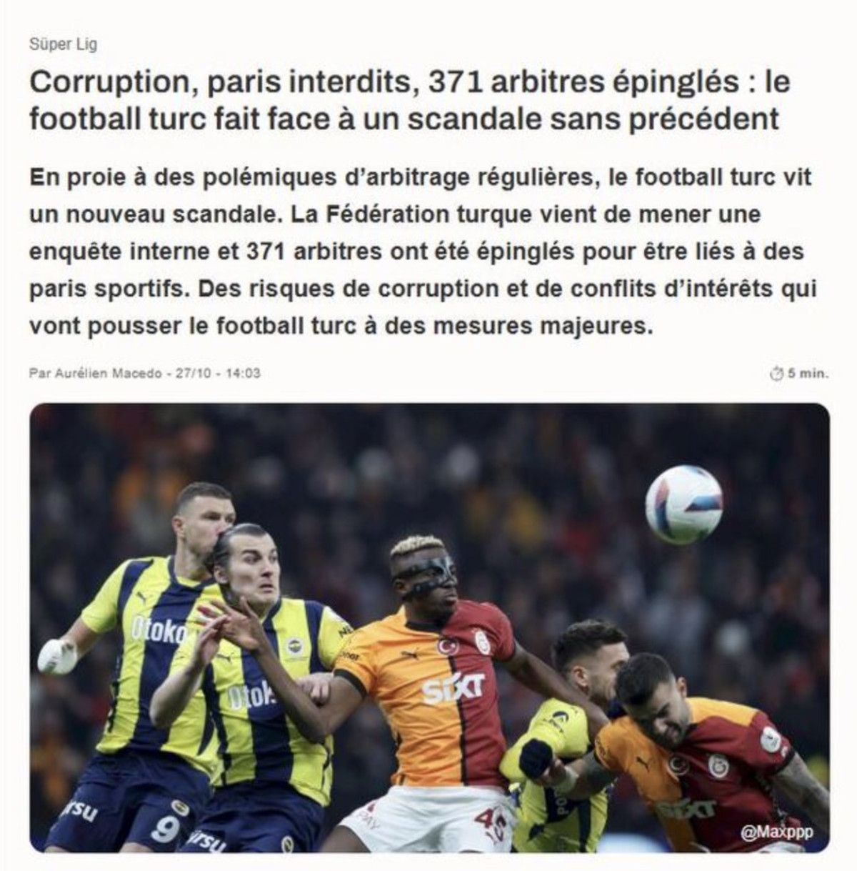 Fransız Foot Mercato, “Yolsuzluk, yasaklı bahis, 371 hakem tespit edildi: Türk futbolu benzeri görülmemiş bir skandalla karşı karşıya” ifadelerini kullandı.