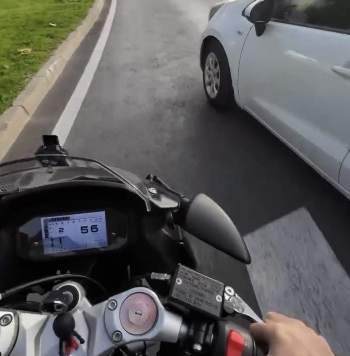 Motosikletli, otomobil sürücüsüne önce korna çalarak tepki gösterdi.