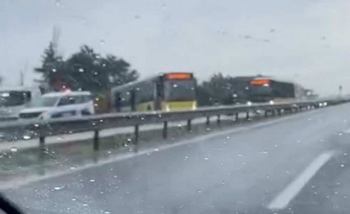 İstanbul’un Büyükçekmece ilçesinde yağış nedeniyle kayganlaşan yolda seyreden bir İETT otobüsü, sürücüsünün direksiyon hakimiyetini kaybetmesi sonucu yoldan çıktı. O anlar güvenlik kamerasına yansıdı.