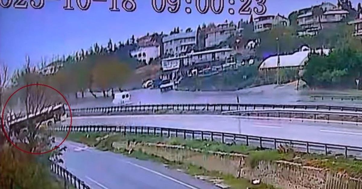 Olay anı çevredeki bir iş yerinin güvenlik kamerasına yansıdı. Görüntülerde, otobüsün hızla kayarak yönünü değiştirdiği ve yan yola doğru savrulduğu anlar yer alıyor.