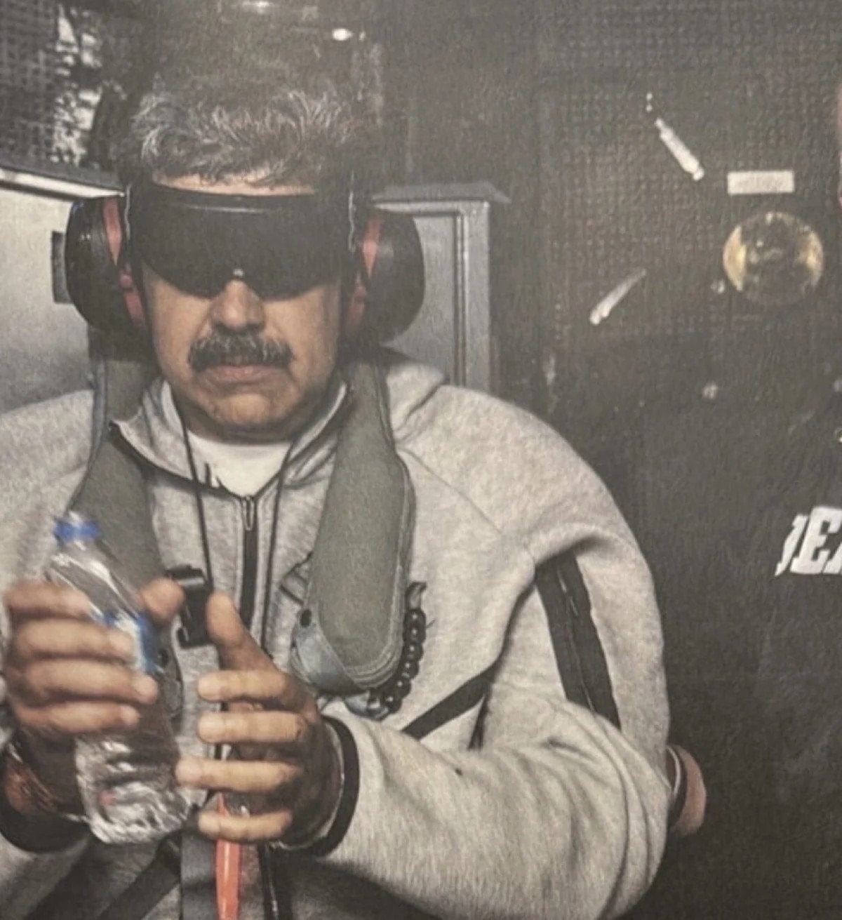 Fotoğrafta, Maduro’nun göz ve kulaklarının kapalı olduğu görülürken arkasındaki DEA ajanı dikkat çekti.