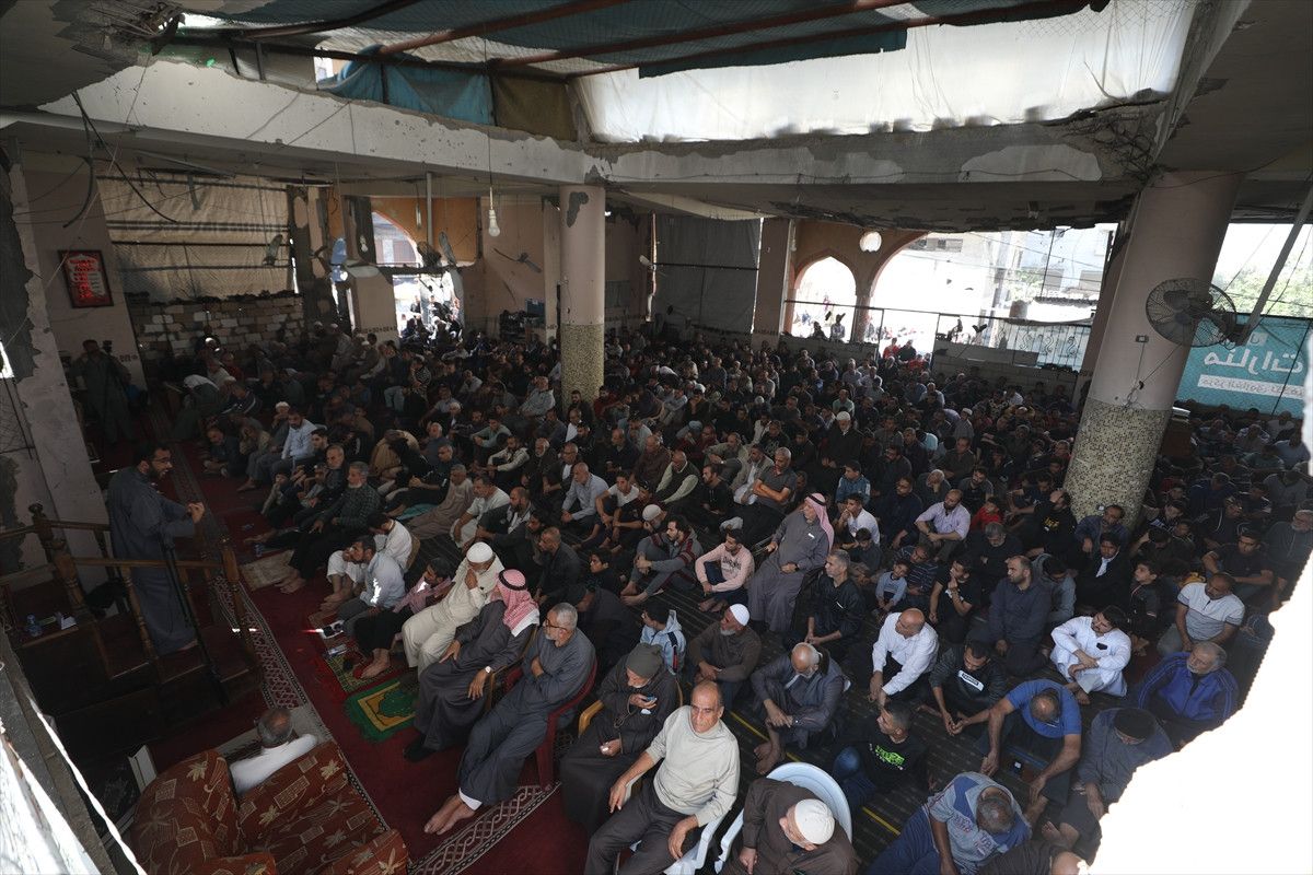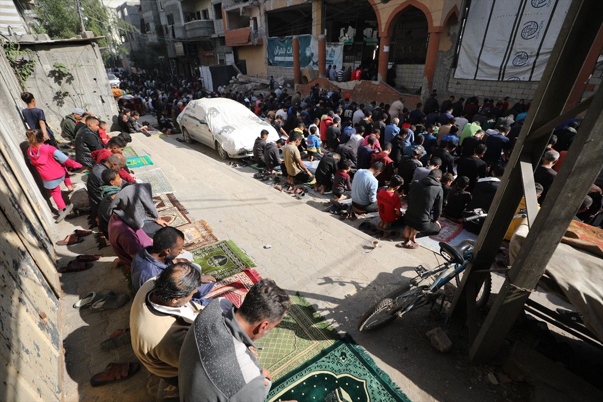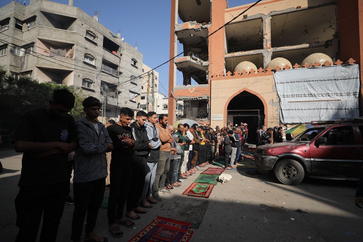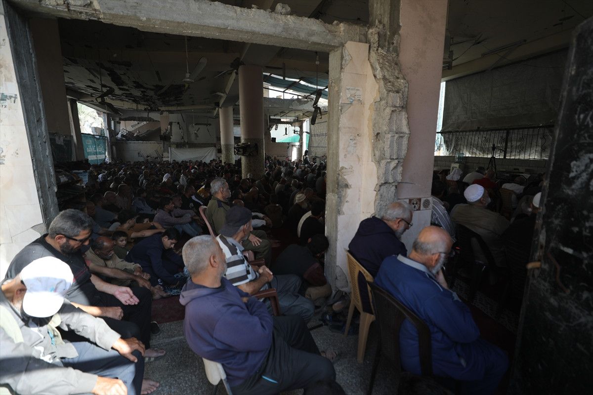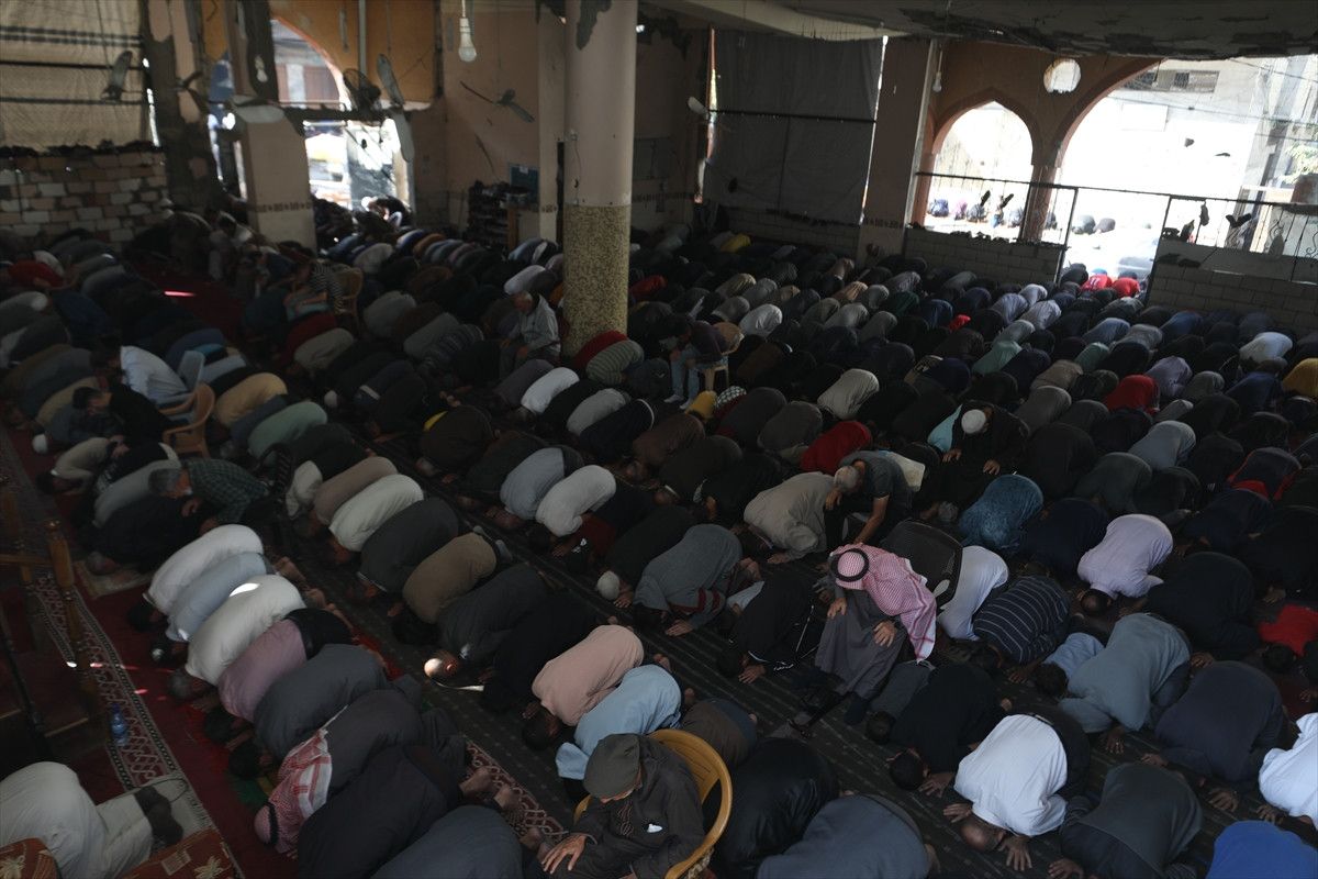 İsrail ordusunun ateşkesin ardından çekildiği Gazze Şeridi’nin orta kesiminde yer alan Nuseyrat Mülteci Kampı’nda cuma namazı kılındı.