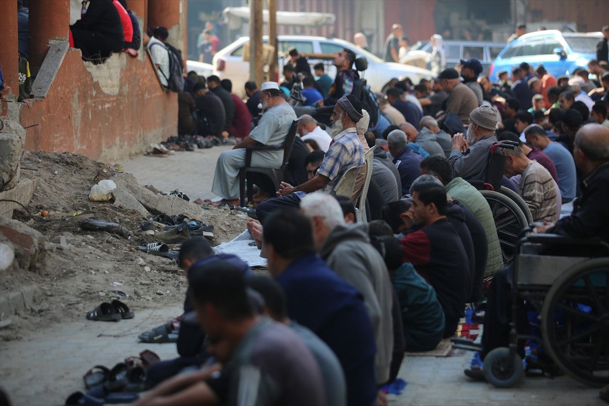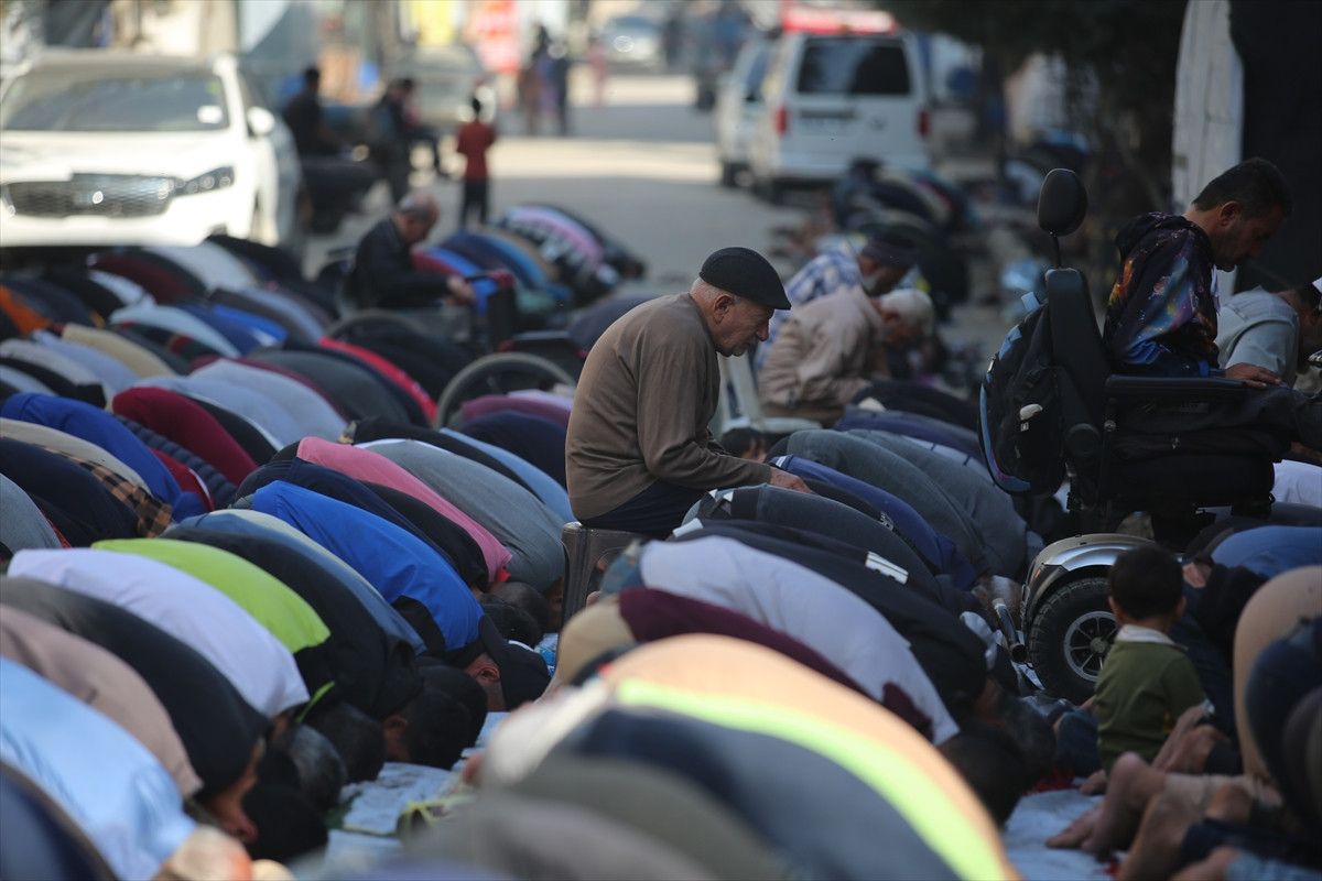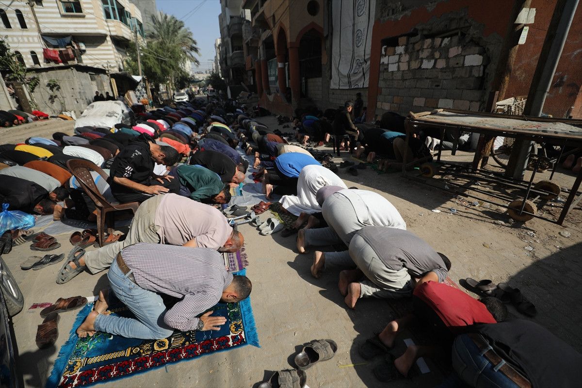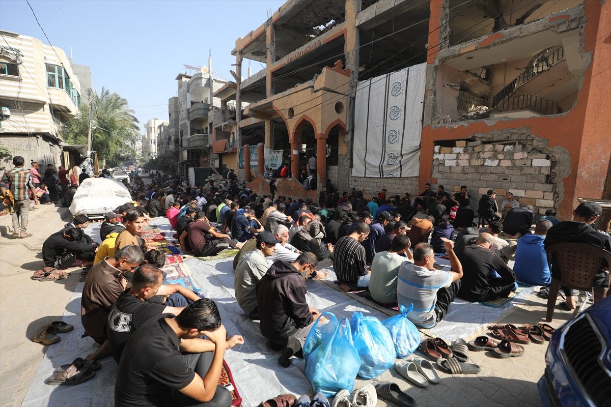 İsrail ordusunun ateşkesin ardından çekildiği Gazze Şeridi’nin orta kesiminde yer alan Nuseyrat Mülteci Kampı’nda cuma namazı kılındı.