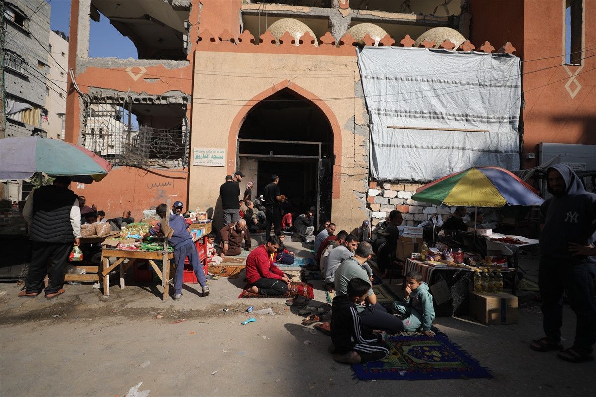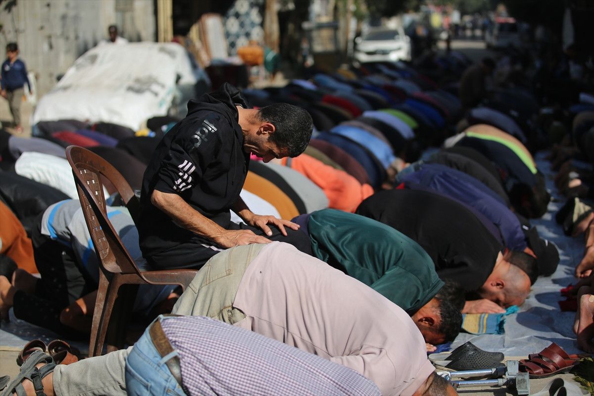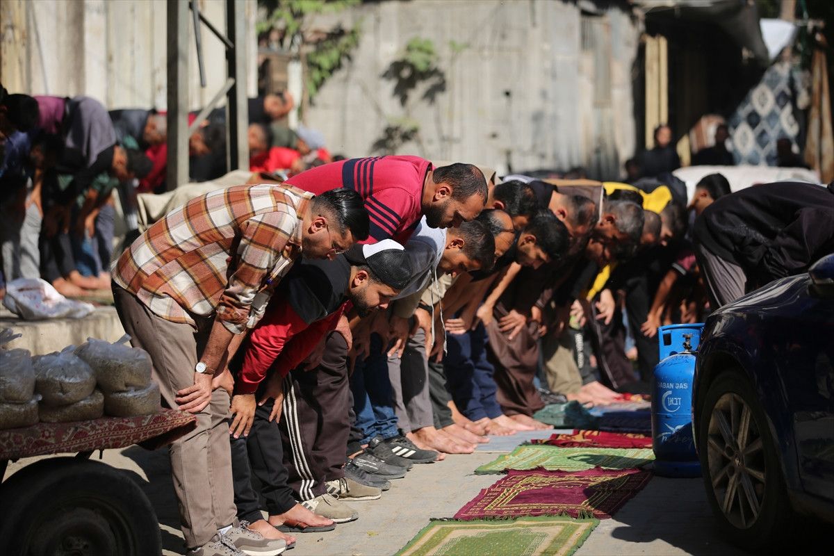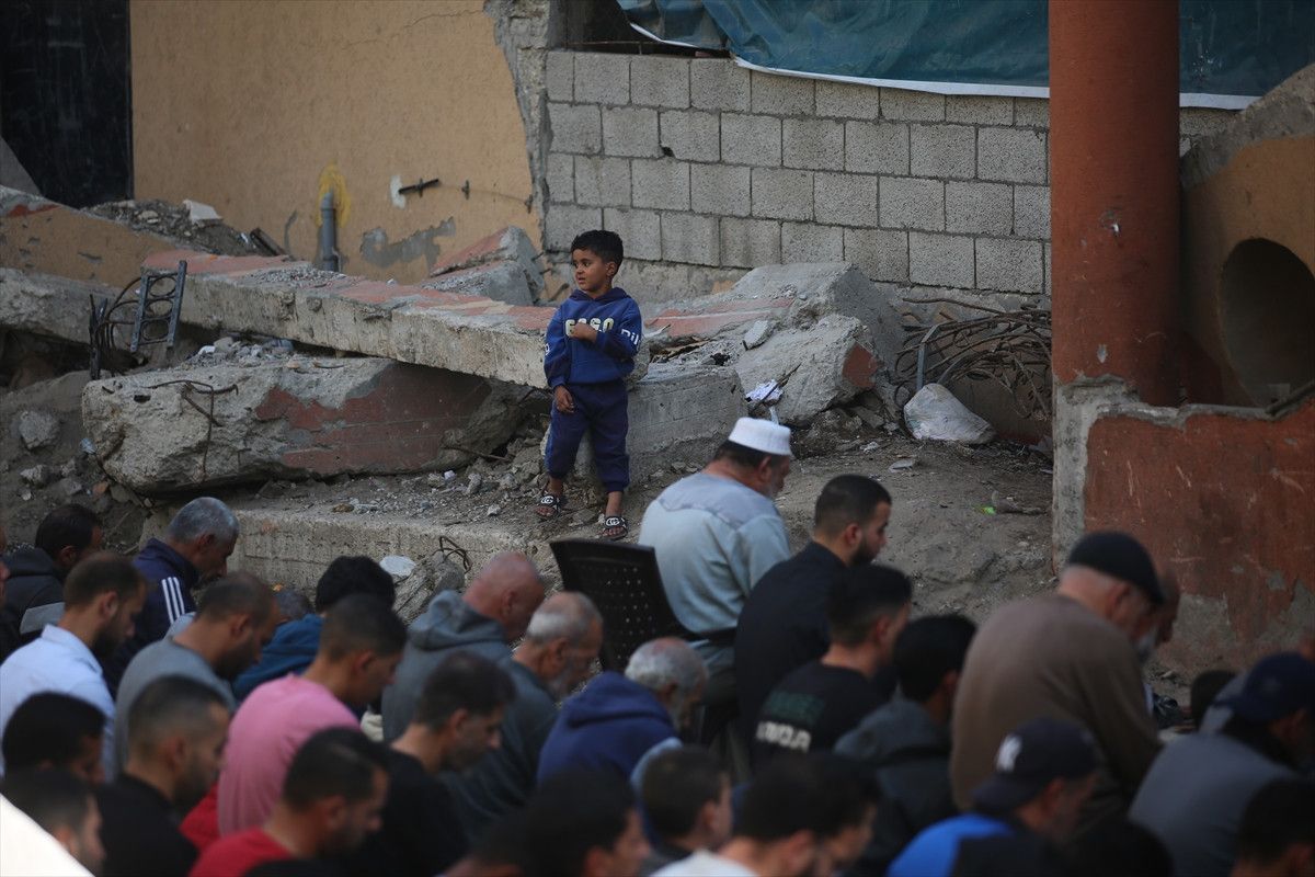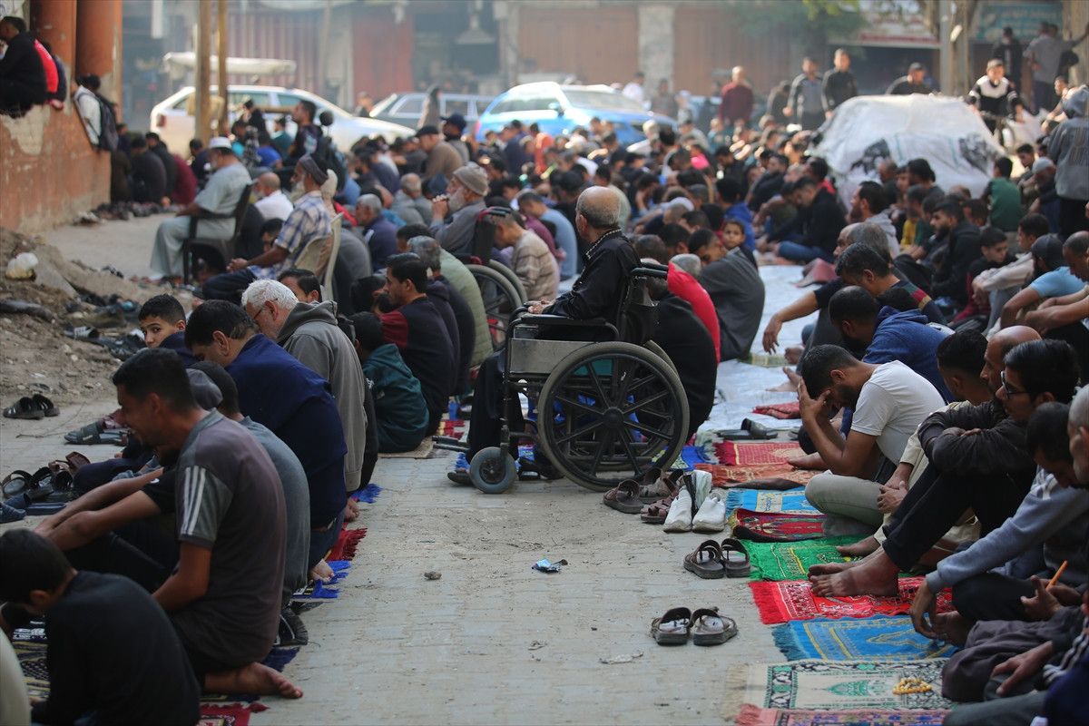 İsrail ordusunun ateşkesin ardından çekildiği Gazze Şeridi’nin orta kesiminde yer alan Nuseyrat Mülteci Kampı’nda cuma namazı kılındı.