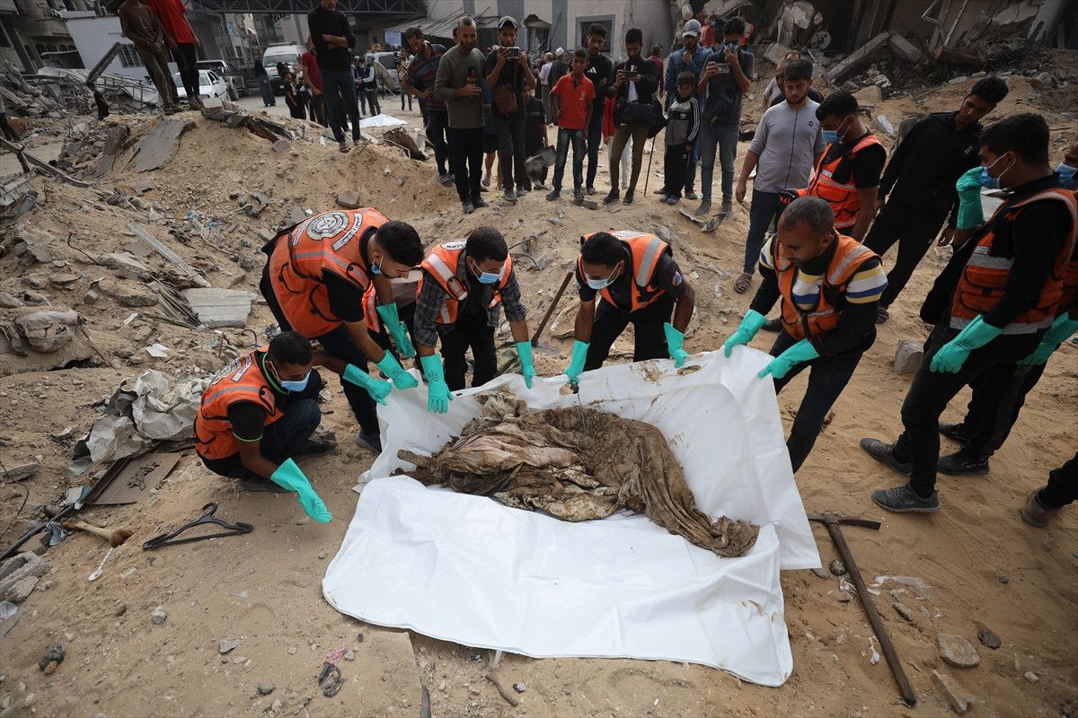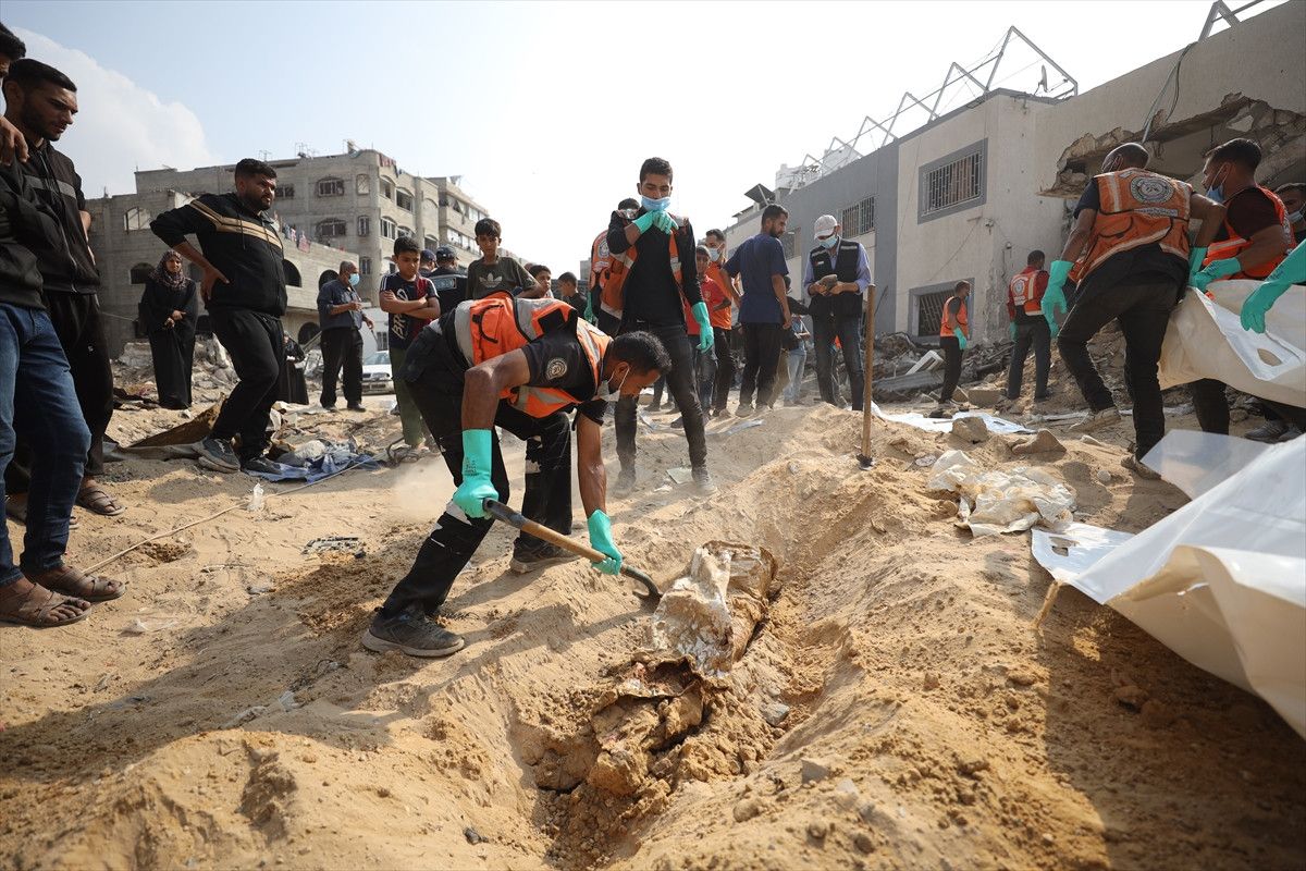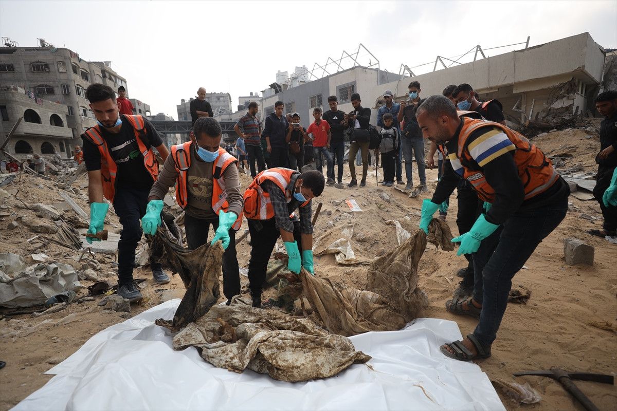 Gazze Şeridi’nde İsrail saldırıları nedeniyle toplu şekilde defnedilen cenazeler, kimlik tespiti ve resmi mezarlıklara nakil amacıyla çıkarılmaya devam ediyor.