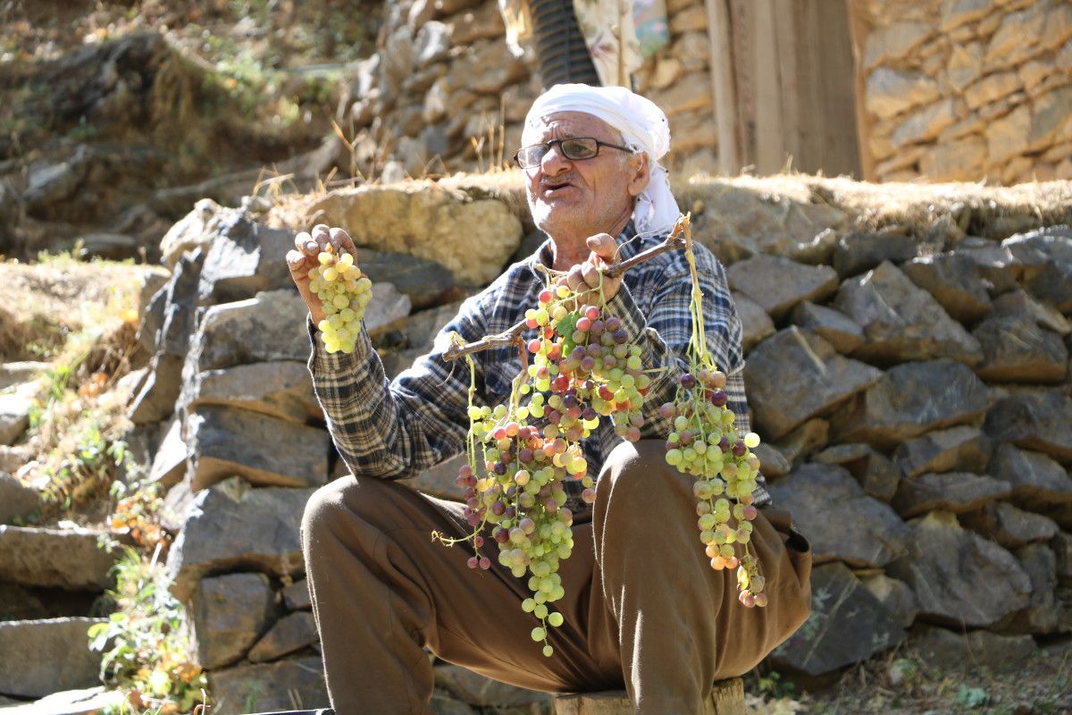 Şemdinli ilçesi Altınsu köyünde yaşayan 12 çocuk babası Süso Çakar, 65 yıldır geçimini üzüm üretimiyle sağlıyor.