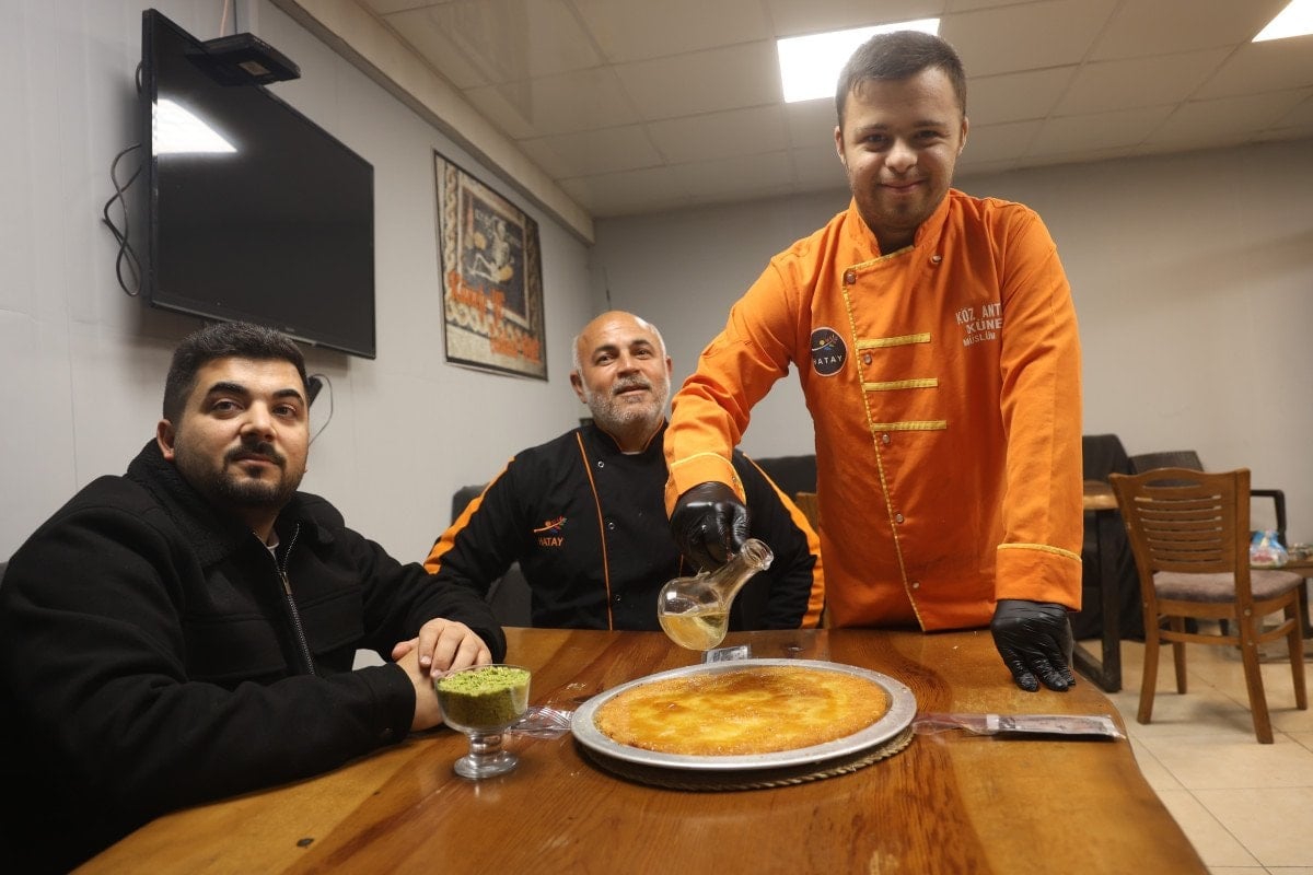 Künefe, dünyanın en iyi tatlısı seçildi. Bu da bizim için gurur vericiydi, dünyanın en iyi tatlısı künefedir. Mehmet 21 yaşında down sendromludur ve aynı zamanda benim köylümdür. Her gün künefe yemeye yanıma gelirdi. Mehmet’i işe alarak künefe ustası yapmaya karar verdik.
