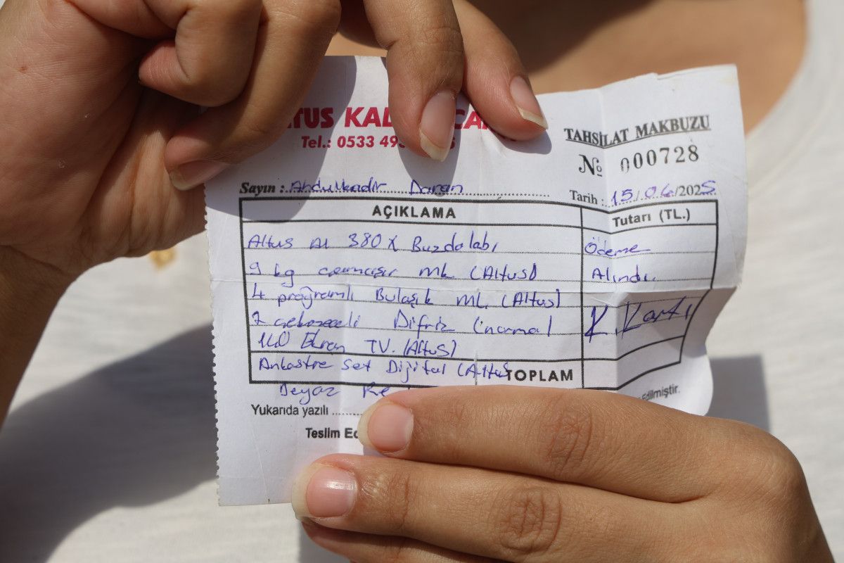 Eşyaların bu zamana kadar ödemesini yapmaya devam ediyoruz. Ben haberi görüp araştırınca aslında dolandırıldığımızı anladım. Adamı defalarca aradık ama ulaşamıyoruz. Dükkana geldik ama kapalı. Benim eşyalara 93 bin TL param gitti.