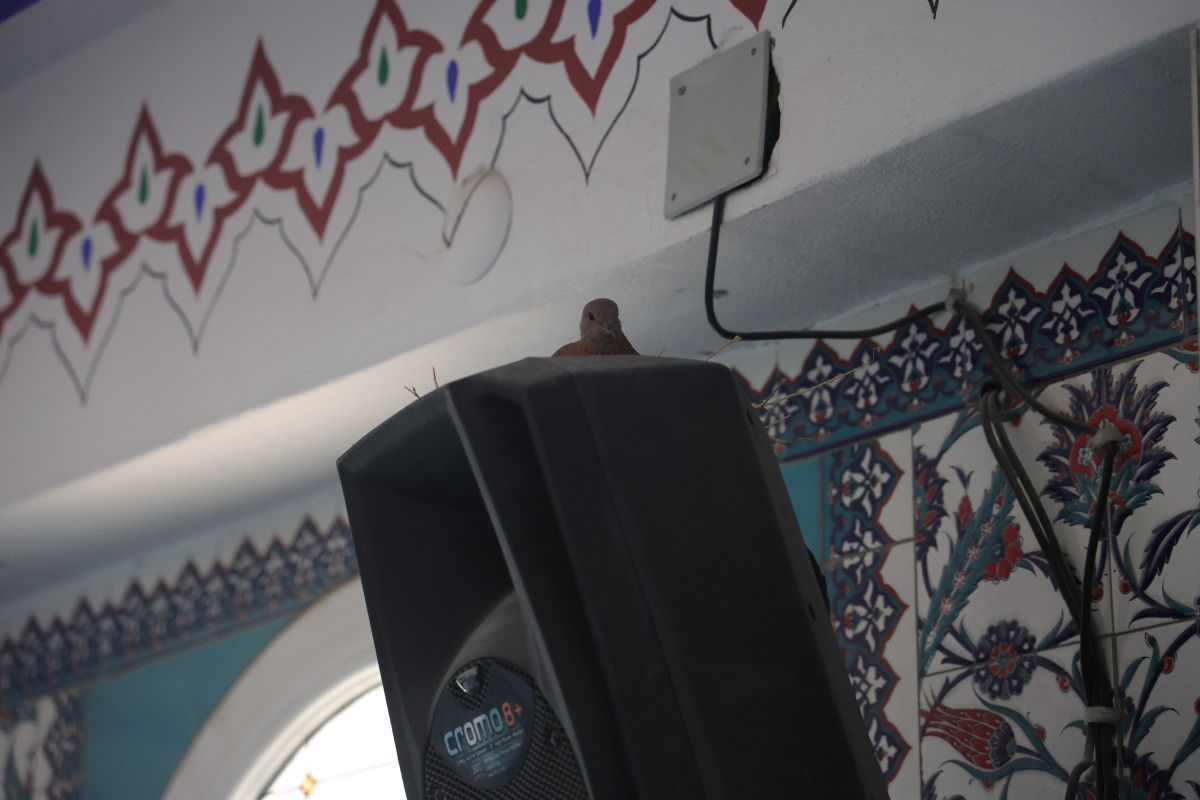 Kuşlar caminin iç kısmındaki hoparlörlerde ve pencerelerin üst kısımlarında yuvalarını kurdu. Cemaat, yuvalara ziyan vermemek için bilhassa hassas davranıyor.