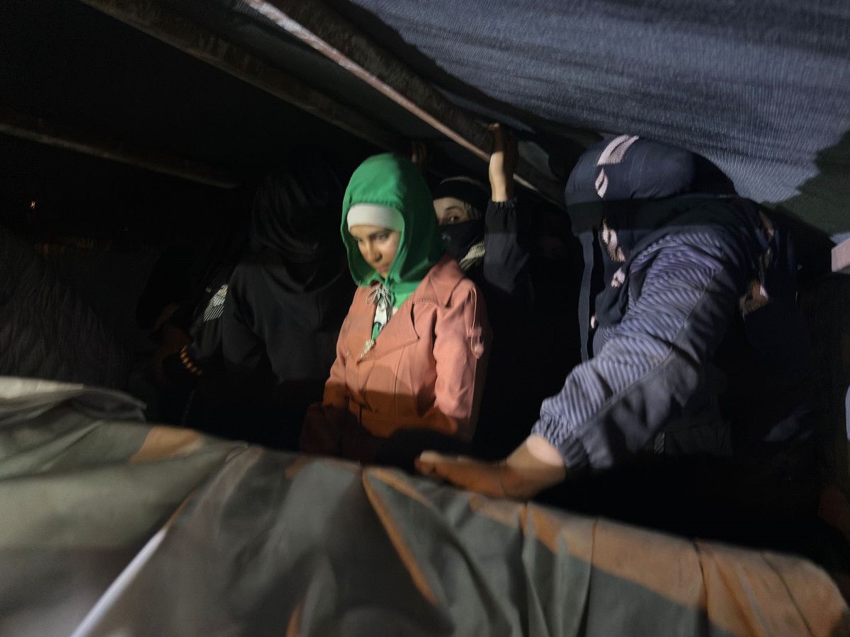Kamyonette; üzerlerinde herhangi bir tanıtma kartı olmayan ve geçerli oturma izni olmayan 4’ü erkek 16’sı kadın toplam 20 yabancı göçmen şahıs yakalandı.