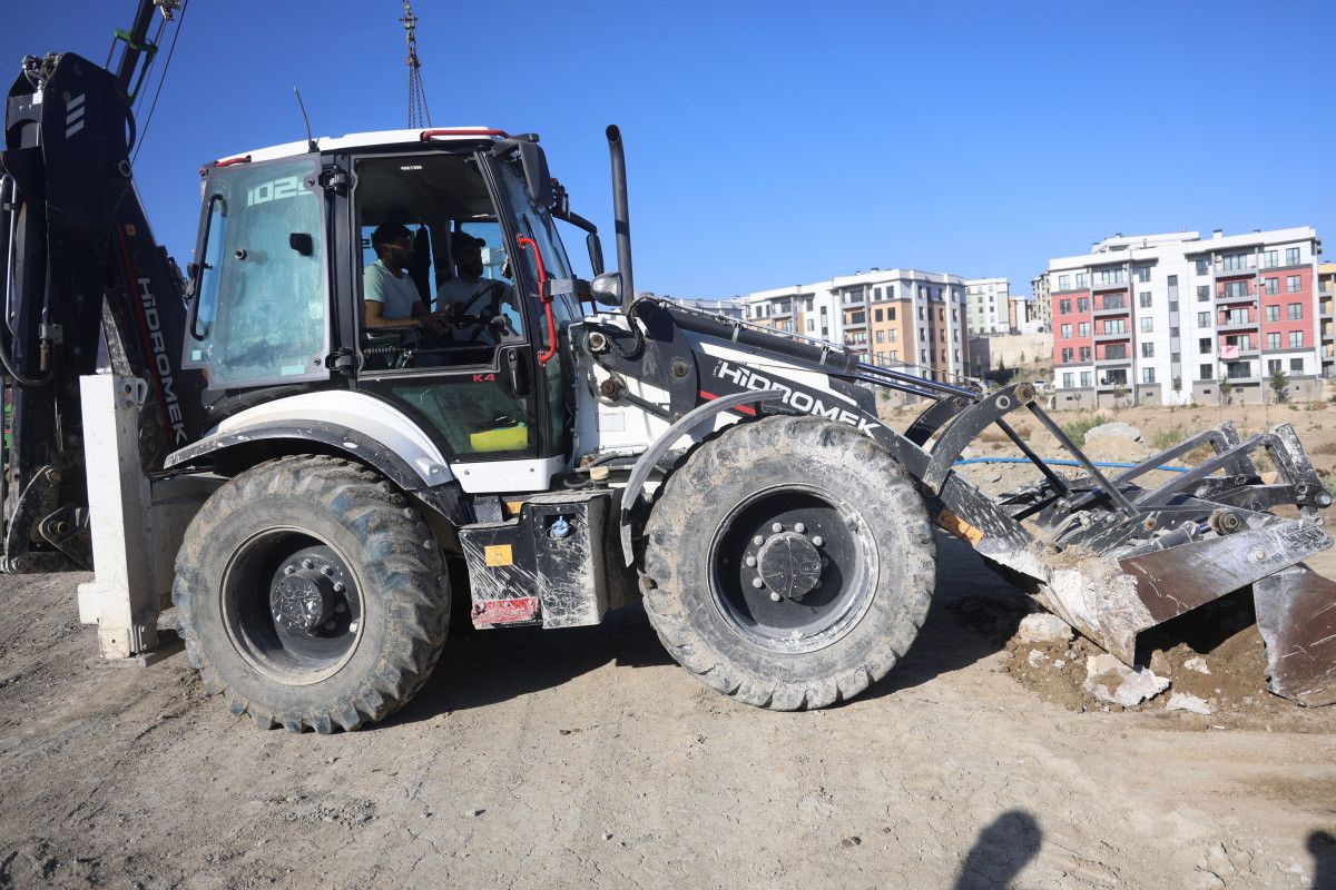 Şantiye içerisinde çalışan operatör Özkan Oluç, iş makinesiyle alevlerin arasına dalarak konteyneri uçurumdan yuvarladı.