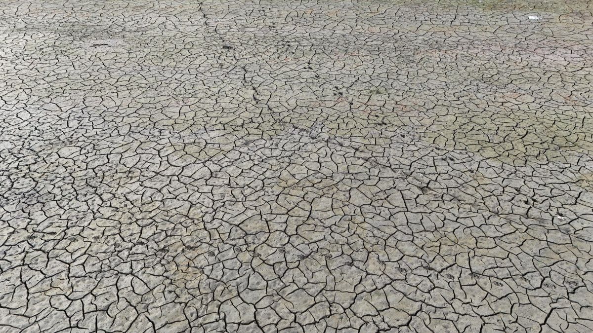 Sazlıdere Barajı’nda havadan çekilen görüntüler, baraj gölünün büyük bölümünde suyun çekildiğini ortaya koydu.