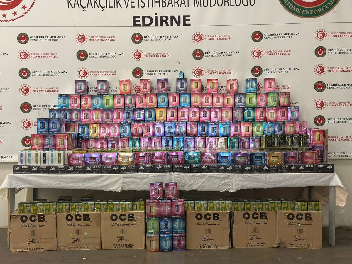 Kapıkule Hudut Kapısı’nda gruplar, bir tırda kaçak elektronik sigara buldu.