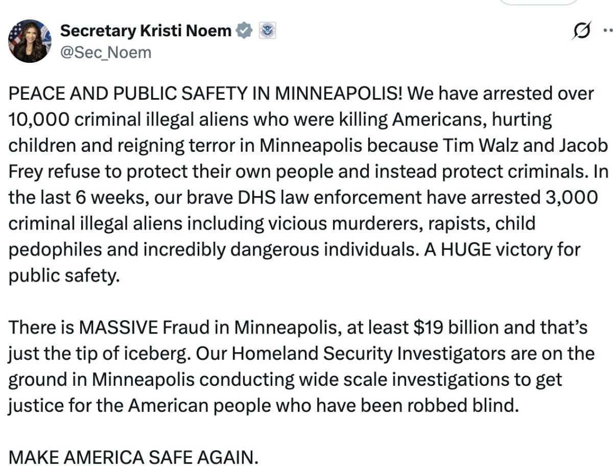 ABD İç Güvenlik Bakanı Kristi Noem, Minnesota eyaletine bağlı Minneapolis kentinde yürütülen operasyonlar hakkında bilgi verdi.