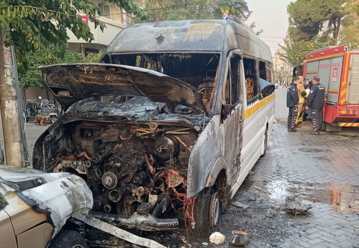 İtfaiye ekiplerinin müdahalesiyle yangın kontrol altına alınırken, midibüs ve yakınında park halinde bulunan bir otomobil yanarak kullanılamaz hale geldi.