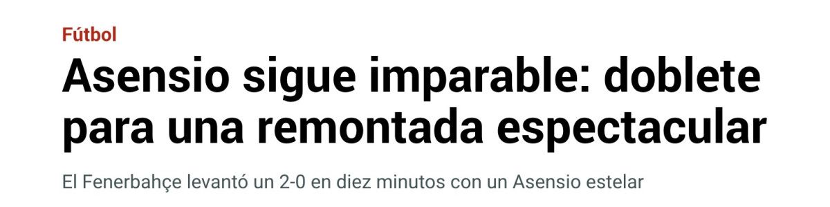 AS ise “Fenerbahçe’nin zaferinin mimarı Asensio” manşetini attı ve “Takımını üst üste 5. galibiyete götürdü.” denildi.
