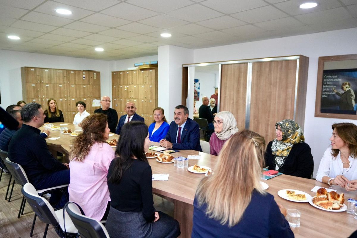 Bakanlık açıklamasına göre Tekin, okulda öğrenci ve öğretmenlerle bir araya gelerek sohbet etti. İstanbul ve Ankara’daki çalıştaylarda kendisini okuluna davet eden 10/F sınıfı öğrencisi Sevgi Kuzudişli, Bakan Tekin’e teşekkür etti.