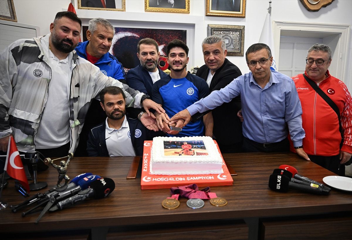 Norveç’te düzenlenen Dünya Halter Şampiyonası’nda erkekler 65 kiloda koparmada 145 kiloyla altın, silkmede ise 179 kiloluk derecesiyle gümüş ve toplamda 324 kiloyla rekor kırarak 2025 dünya şampiyonu olan milli halterci Muhammed Furkan Özbek’in başarısı için ASKİ Spor Kulübü’nde pasta kesilerek, kutlama yapıldı.