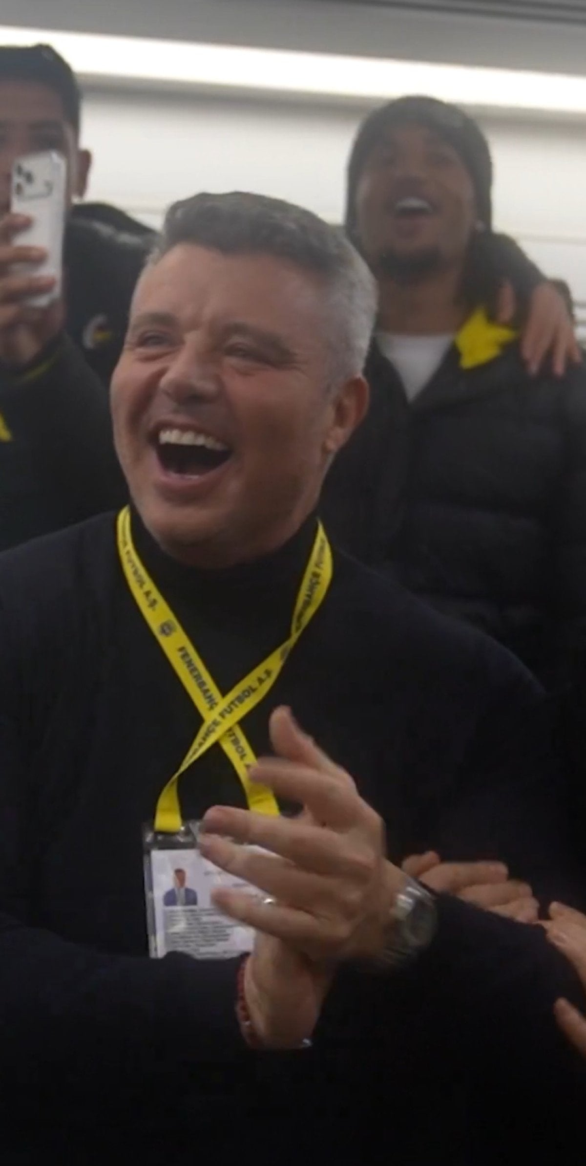 Saran, Süper Kupa’yı kazandıkları maçın ardından sarı-lacivertli takımın soyunma odasına giderek futbolcuları kutladı.