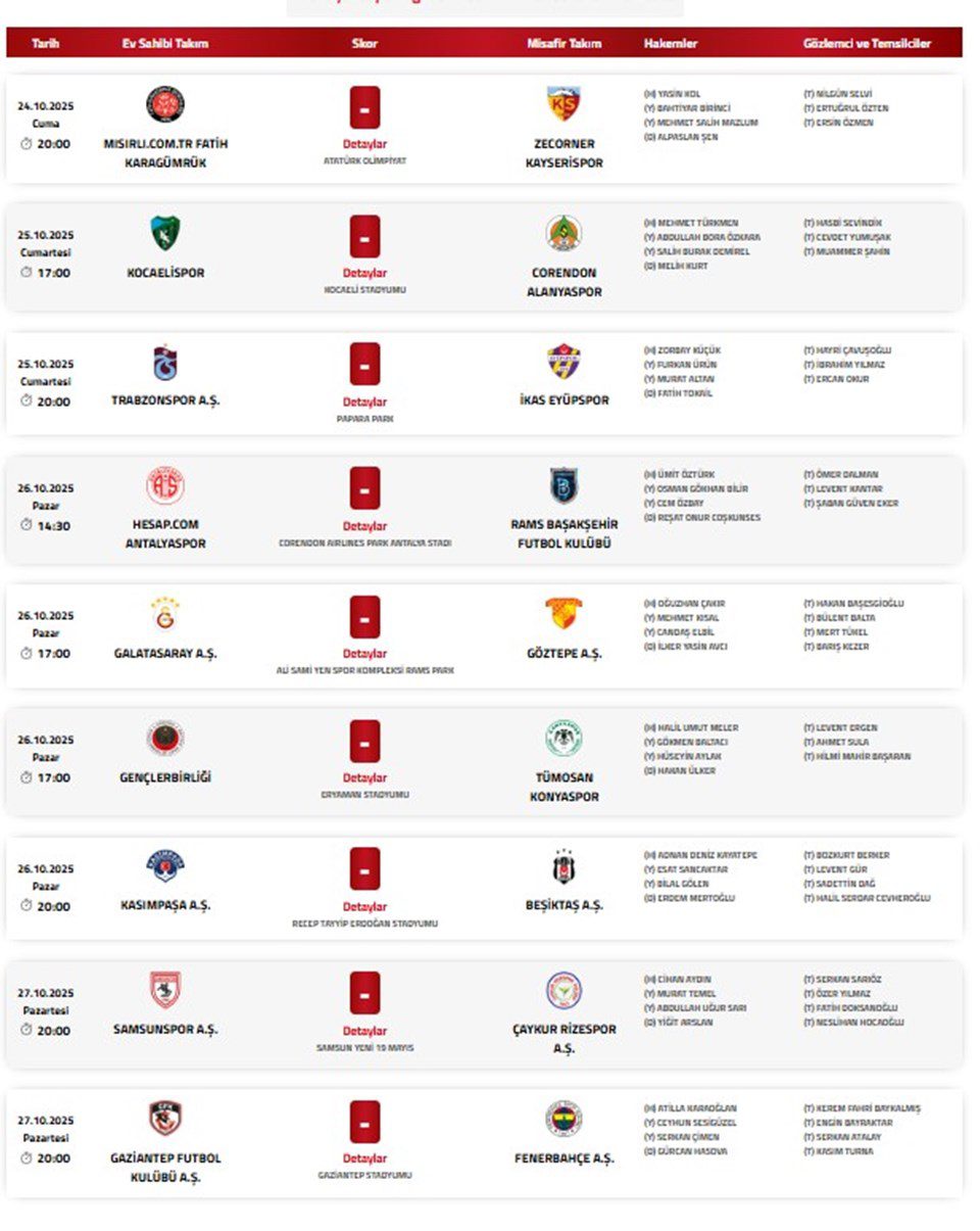 Süper Lig’de 10. haftanın programı ve maçlarda düdük çalacak hakemler şöyle: