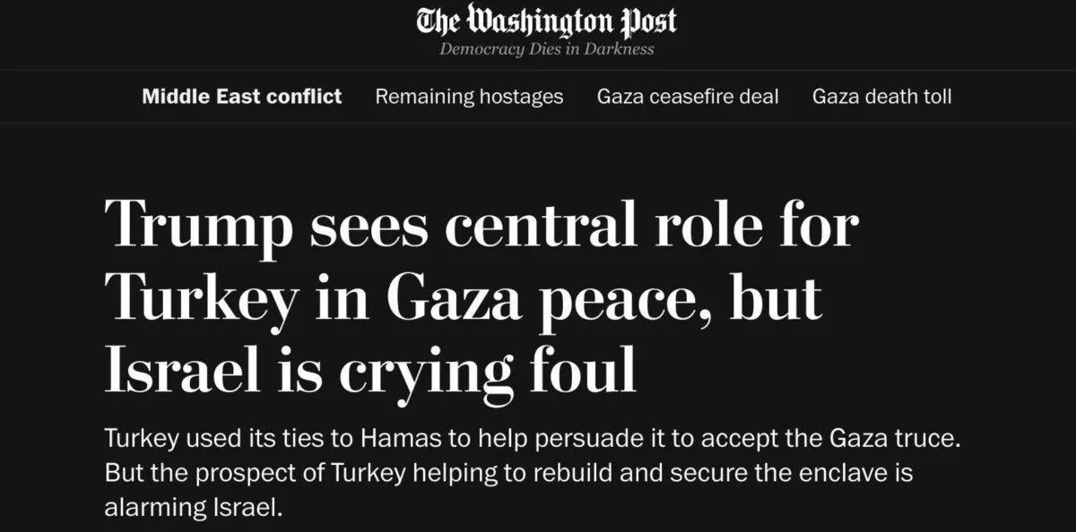 Washington Post gazetesinin, “Trump, Türkiye’nin Gazze barışında merkezi bir rol oynadığını düşünüyor ancak İsrail buna itiraz ediyor” başlıklı makalesinde Orta Doğu’daki sürece ilişkin gelişmeler mercek altına alındı.