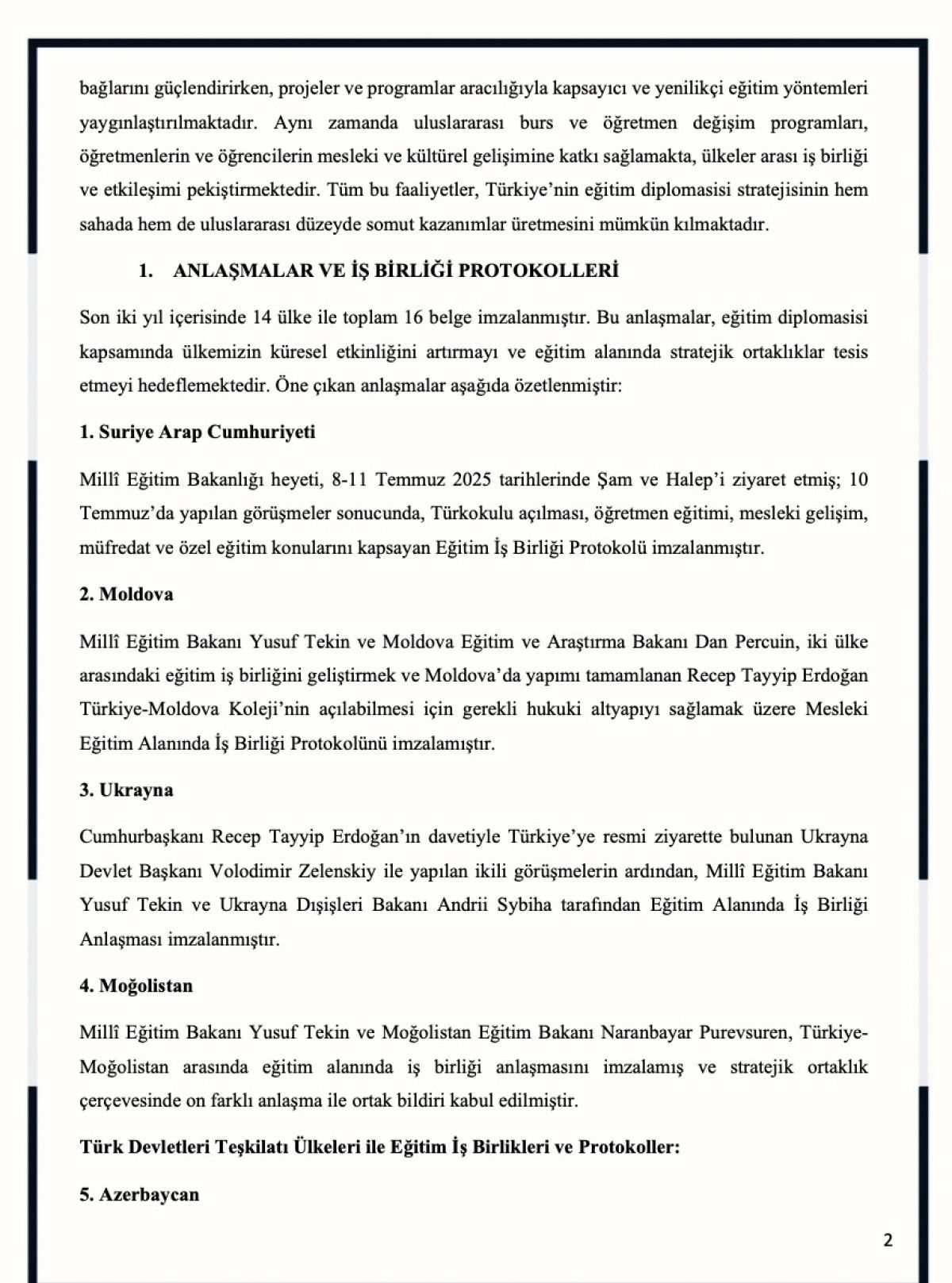 • Ukrayna, Moğolistan, Azerbaycan, Kazakistan ve Kırgızistan gibi ülkelerle de yükseköğretimden mesleki eğitime kadar çeşitli alanlarda stratejik anlaşmalar gerçekleştirildi.