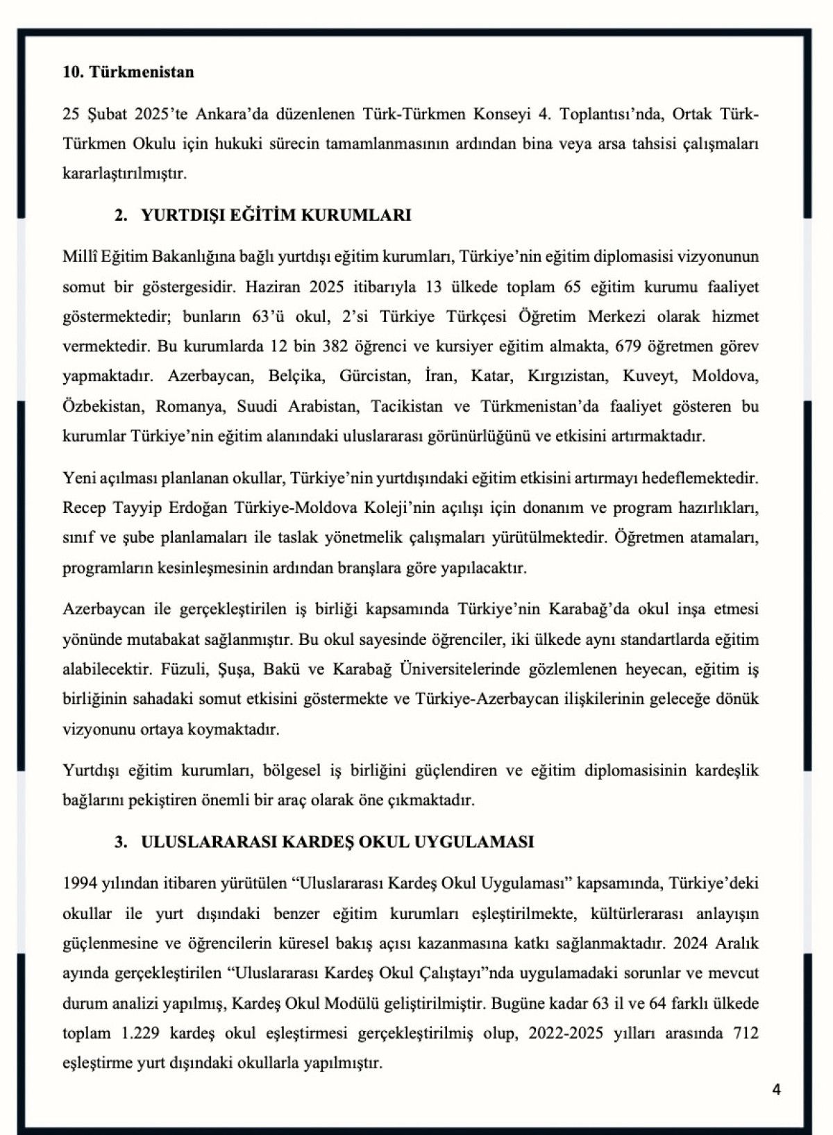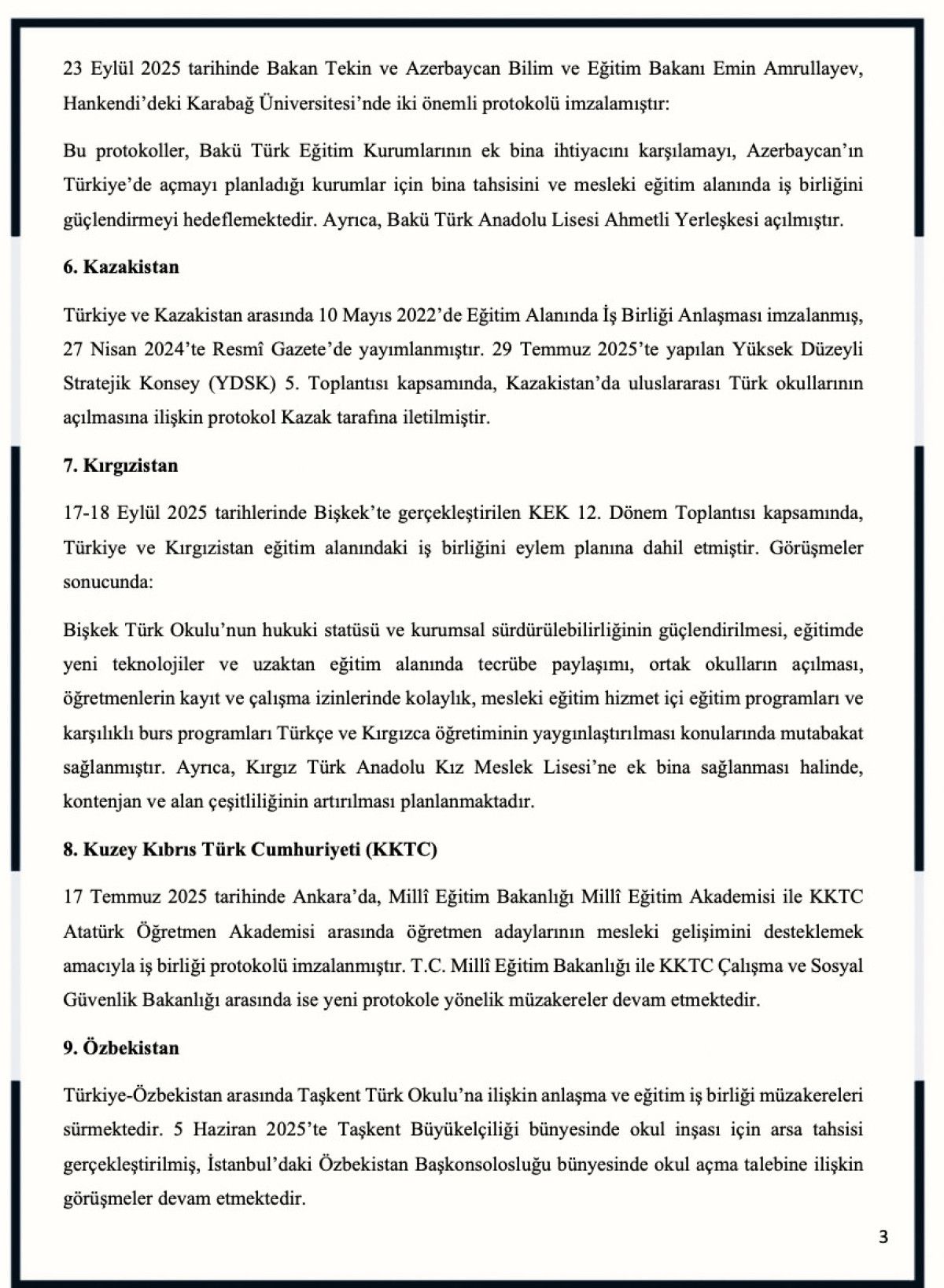 • KKTC, Türkmenistan ve Özbekistan ile yapılan görüşmeler kapsamında ise yeni Türk okulları açılacak.