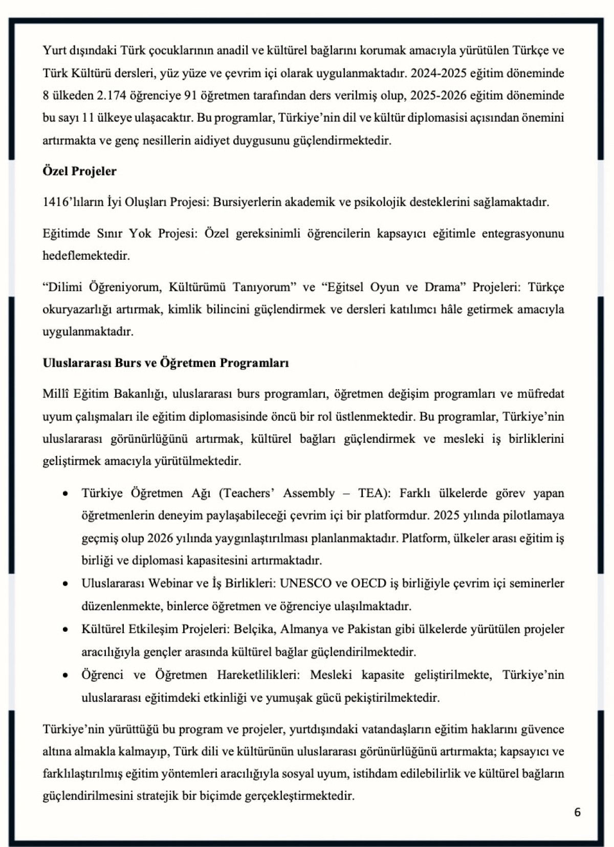 Bakanlık yetkilileri, önümüzdeki dönemde yeni anlaşmalarla Türkiye’nin eğitim diplomasisini daha da kurumsallaştırmayı ve kapsayıcı eğitim modellerini uluslararası alanda yaygınlaştırmayı hedeflediklerini belirtti.