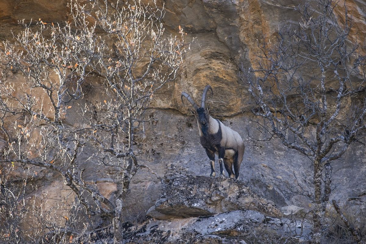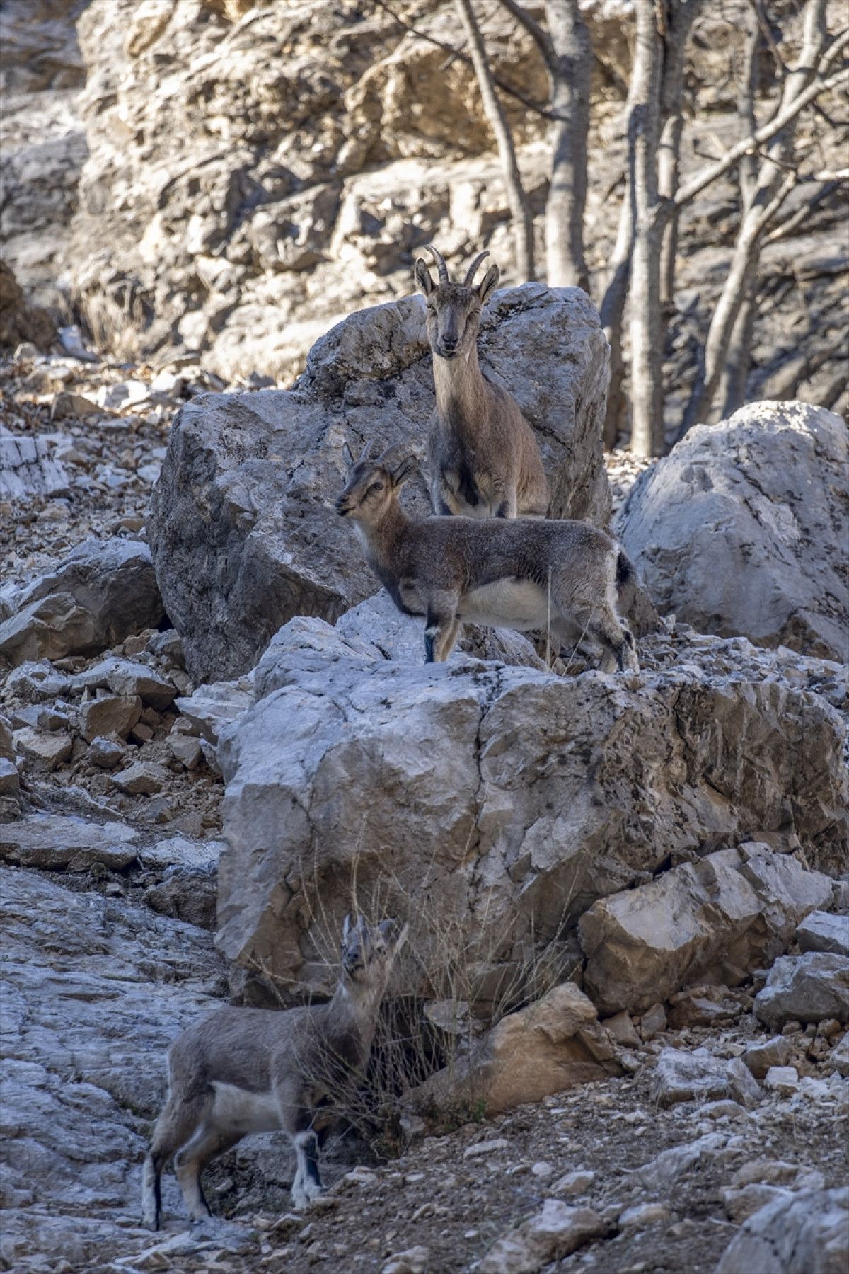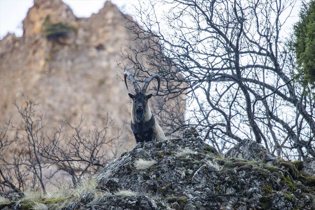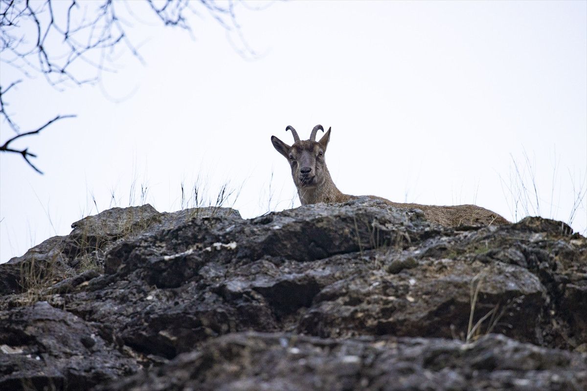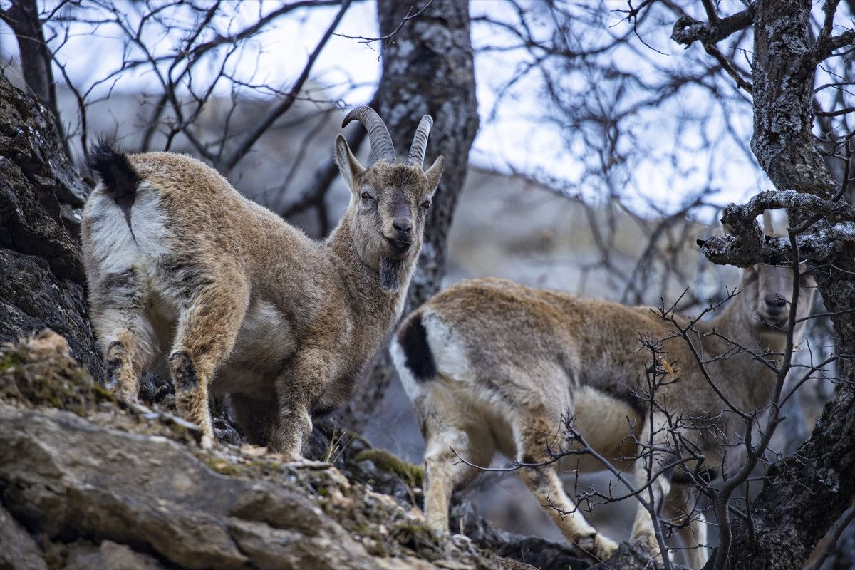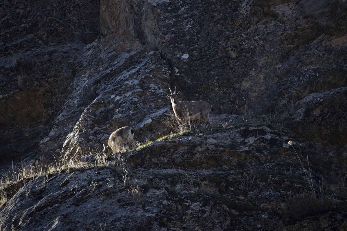 Koruma altında bulunan ve avlanması yasak olan yaban keçileri, karla kaplanan yüksek alanlardan daha alçak kesimlere yöneldi. Munzur Vadisi Milli Parkı’nı mesken tutan keçiler, vadide meşe dalları ve kuru otlarla beslenirken görüntülendi.