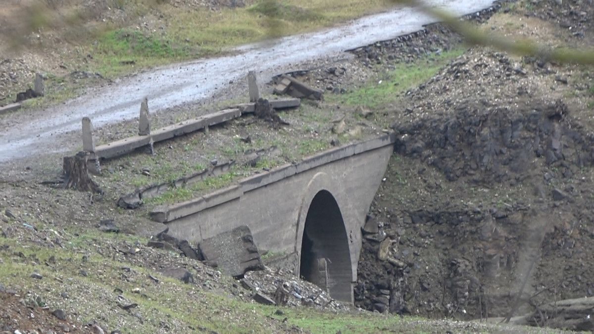 Yolun bir kısmı drone ile net şekilde görülürken yol üzerindeki köprüler de suların çekilmesiyle ortaya çıktı.