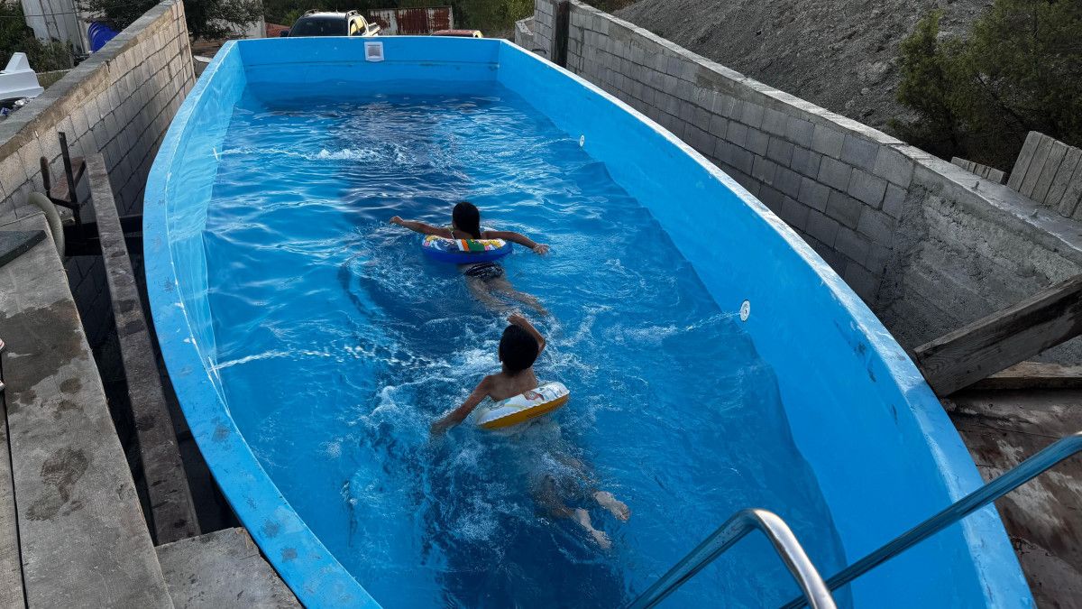 İstanbul’da yat dalında çalışıyorum. Bu yıl sıcaklar artınca aklıma bu fikir geldi. Hayalimi gerçeğe dönüştürmek için kalıbı, çekiciyle 40 bin TL nakliye masrafıyla getirdim. Bahçemde sondaj var, havuzumuzu kendi suyumuzla doldurduk ve hijyenine dikkat ederek hazır hale getirdik. Yatlarımızı denizde kullanıyoruz, artık karada kullanalım dedik. Havuz inşaatımız hâlâ devam ediyor ancak çocuklarım çok memnun.