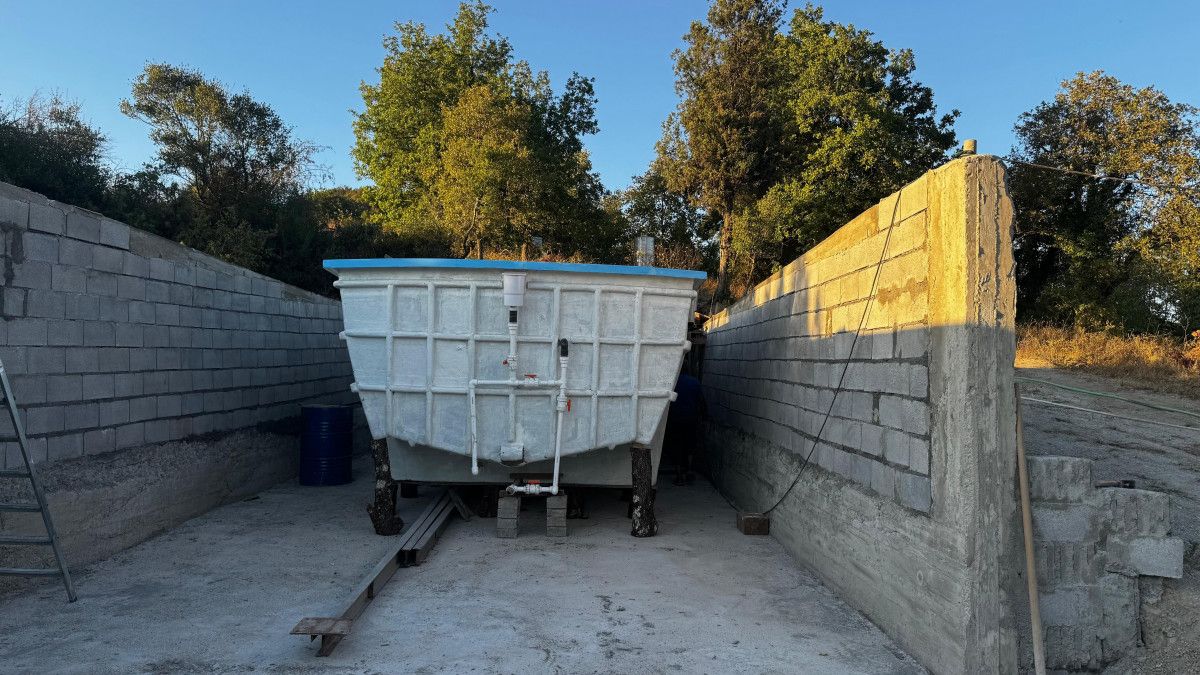 İstanbul’da imal ettiği 17 metrelik yat kalıbını 270 kilometre uzaklıktaki köyüne çekiciyle getiren Demircan, bahçesine dönüştürülebilir bir havuz yaptı.